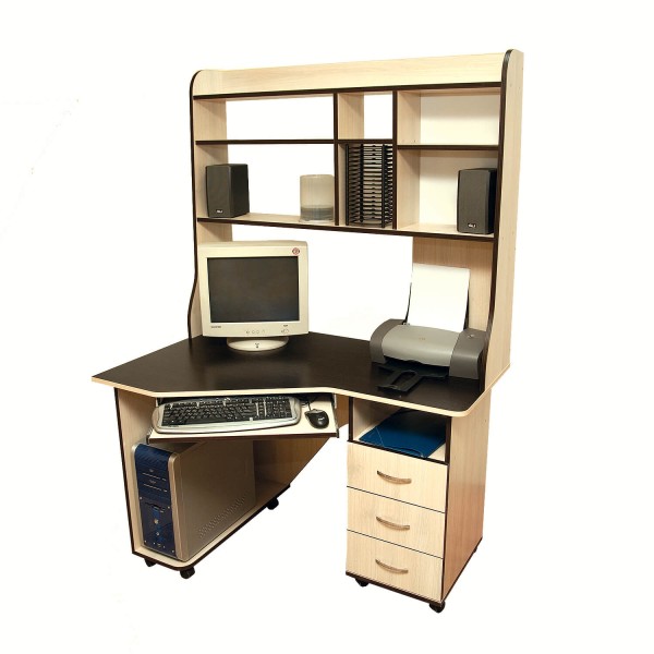 Комп'ютерний стіл «Ніка 16» - комфорт і зручність. Невеликий стіл, який об'єднує потрібні елементи з різних предметів меблів, створює комфорт для роботи за ним. Зручна опція столу - колеса замість ніжок. Стіл добре підходить для власників мобільної техніки, в той час на полицю знизу можна покласти сумку або інші речі.