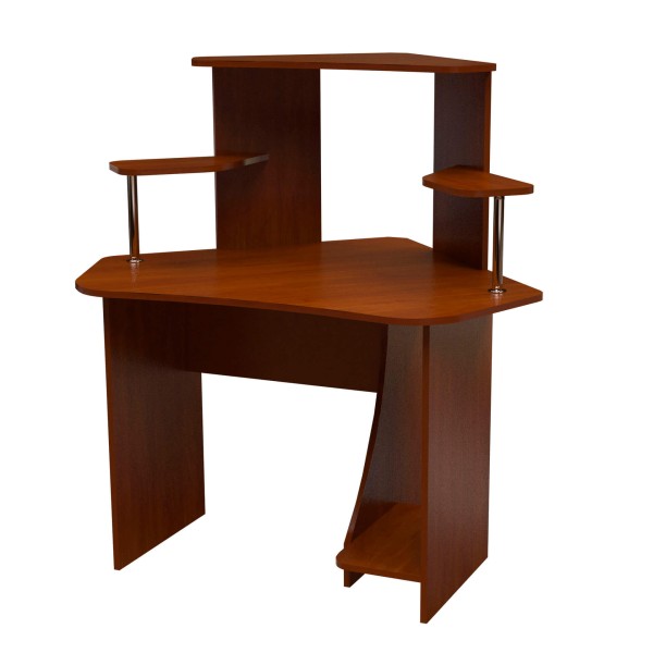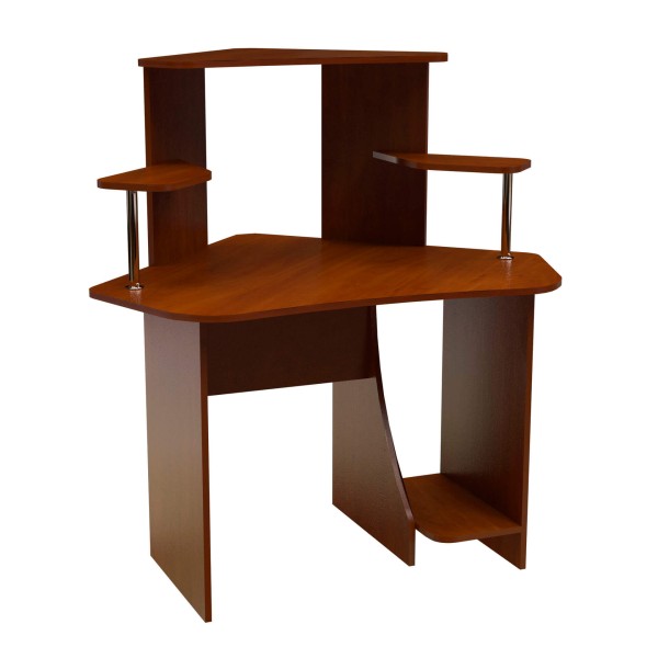 Кутовий комп'ютерний стіл з надбудовою. Трикутна полиця знаходиться на висоті 1260 мм. Симетрично з обох боків - полиці для колонок на металевих хромованих стійках. Стіл обладнаний відсіком для системного блоку. Внутрішня стінка відсіку має дугоподібну форму. Ширина та глибина столу - 1000 мм.