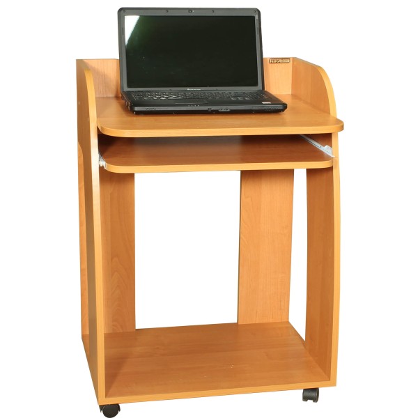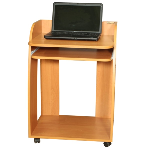 Прямий пересувний комп'ютерний стіл на пластмасових колесах. Існують полиця під клавіатуру та полиця внизу столу. Лише 600 мм завширшки на 4-х пластмасових колесах.