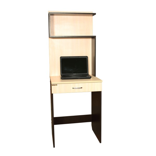 Прямий вузький комп'ютерний стіл з надбудовою висотою 1550 мм. Надбудова представлена двома полицями з задньою стінкою. Ширина столу - 600 мм, а глибина - лише 500 мм. Має одну шухляду під стільницею на всю ширину столу.